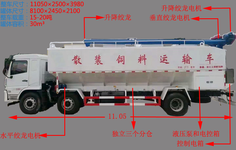 (4)料罐容積30-35方,4個獨(dú)立倉,實(shí)載:豬料 17-19噸,雞料19-21噸