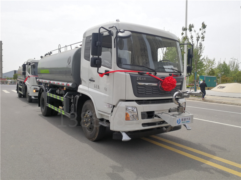 我公司產(chǎn)品標(biāo)配前沖后灑、側(cè)噴、后置式工作平臺(tái)、平臺(tái)上有高壓軸承灑水炮(可360°旋轉(zhuǎn),可調(diào)成柱狀最大射程 35米,也可調(diào)成霧狀最大射程15米,可調(diào)成:直沖狀、大雨、中雨、小雨、毛毛雨),配備優(yōu)質(zhì)大功率專用灑水泵,取力器,雜物過(guò)濾網(wǎng),國(guó)標(biāo)通用65型消防接口(可通過(guò)消防栓加水)、1套自流球閥系統(tǒng)(可自吸自排,可從河里或池塘抽水到罐體,最大吸程7米),2根引水鋼絲膠管。水泵、取力器、球閥、濾網(wǎng)均為國(guó)家標(biāo)準(zhǔn)產(chǎn)品,主管道加粗,法蘭墊、法蘭盤加厚,萬(wàn)向前沖,大通徑球閥,具有性能優(yōu)良,工作可靠、效率高、流量大、維修方便等特點(diǎn)。