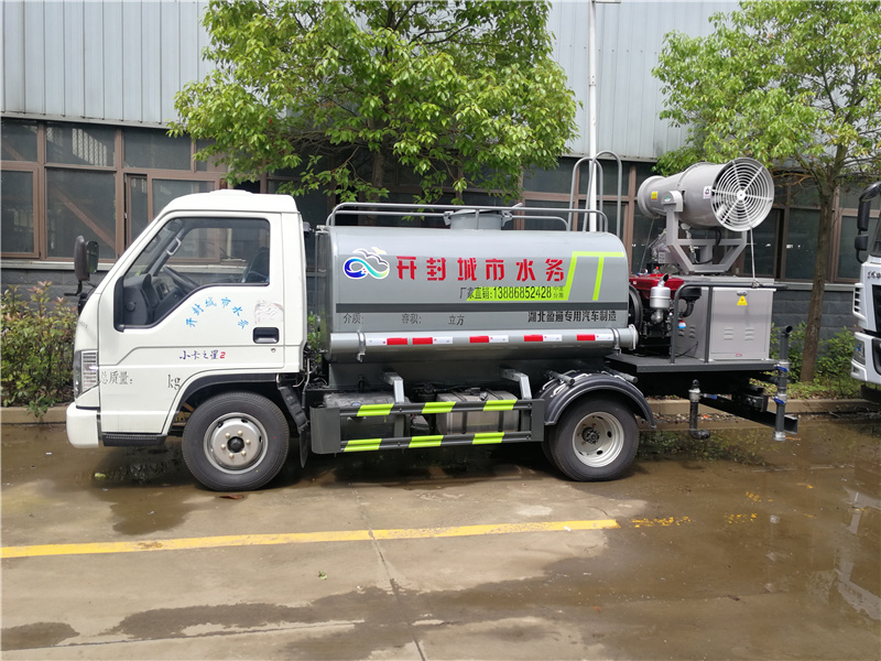 福田藍(lán)牌灑水車多少錢一輛_福田藍(lán)牌霧炮抑塵車,福田小卡二藍(lán)牌灑水車_國六藍(lán)牌霧炮車_藍(lán)牌三方灑水車_湖北盈通專用汽車有限公司,功能配置:罐體有效容積9噸,采用武鋼4mm 優(yōu)質(zhì)碳鋼一次卷壓無縫成型,部分配灑水泵,帶前沖、后灑、側(cè)噴、后工作平臺及灑水高壓炮。配消防接口、自流閥,2根與罐體等長輸水管,水位計(jì),1個爬梯,兩側(cè)及后杠。灑水泵自吸高度為7米,出水量為60立方米每小時,灑水寬度大于14米,后工作平臺水炮可調(diào)成直沖狀、大雨、中雨、小雨、毛毛雨,直沖射程25米左右,霧狀射程15米左右。(可選配:錳鋼罐體、加粗管道、駕駛室一鍵操作、氣動控制、罐體防腐、高端灑水泵)