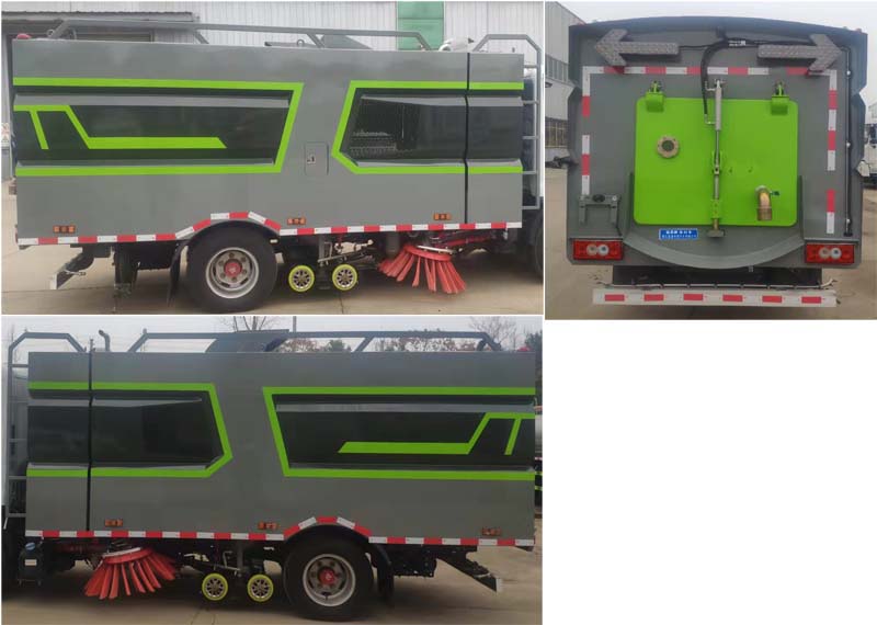 該車主要作用于路面的清掃作業(yè);專用裝置為洗掃裝置、垃圾箱。隨底盤選裝駕駛室;側(cè)防護(hù)為專用裝置代替,后防護(hù)材料為:Q235碳鋼,連接方式為:螺栓連接,后部防護(hù)截面尺寸(mm):120×50,后部防護(hù)離地高度(mm):350;ABS系統(tǒng)控制器型號(hào)為CM4XL-4S/4M,ABS系統(tǒng)控制器生產(chǎn)企業(yè)為廣州瑞立科密汽車電子股份有限公司.選裝左右及后部樣式。 |