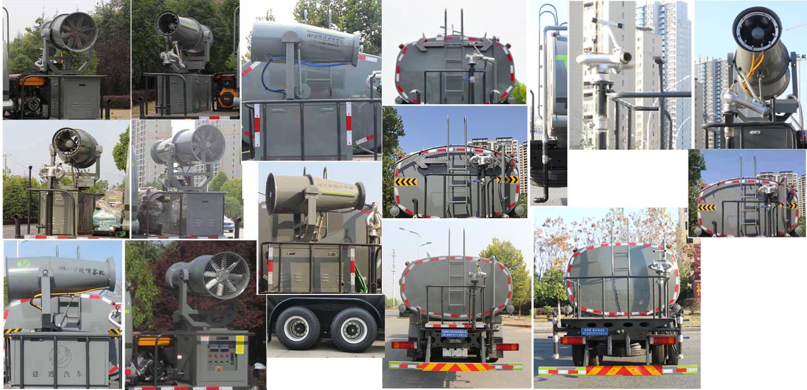 該車主要用于城鄉園林綠化噴灑;主要裝置為水罐及噴霧裝置;隨底盤選裝駕駛室,選裝噴霧裝置樣式,選裝罐體后部弧形高壓噴頭及箭頭指示燈;罐體總容量:14.81立方米;罐體有效容積:14.11立方米,罐體外形尺寸(長×長軸×短軸)(mm):6800×2390×1620;側、后防護材料均為:Q235碳鋼,連接方式均為:螺栓連接,后部防護截面尺寸(mm):120×50,后部防護離地高度(mm):480;ABS型號及生產廠家為:3631010-C2000/東科克諾爾商用車制動系統(十堰)有限公司,J ABS/焦作博瑞克控制技術有限公司.僅采用底盤4350+1350軸距(mm)改裝。隨底盤選裝副水箱及支架、空濾尿素罐、電瓶框等位置布局。選裝后部樣式,選裝水炮支架位置,選裝高位花灑管道樣式,選裝弧形噴灑裝置,選裝箭頭燈裝置。 |