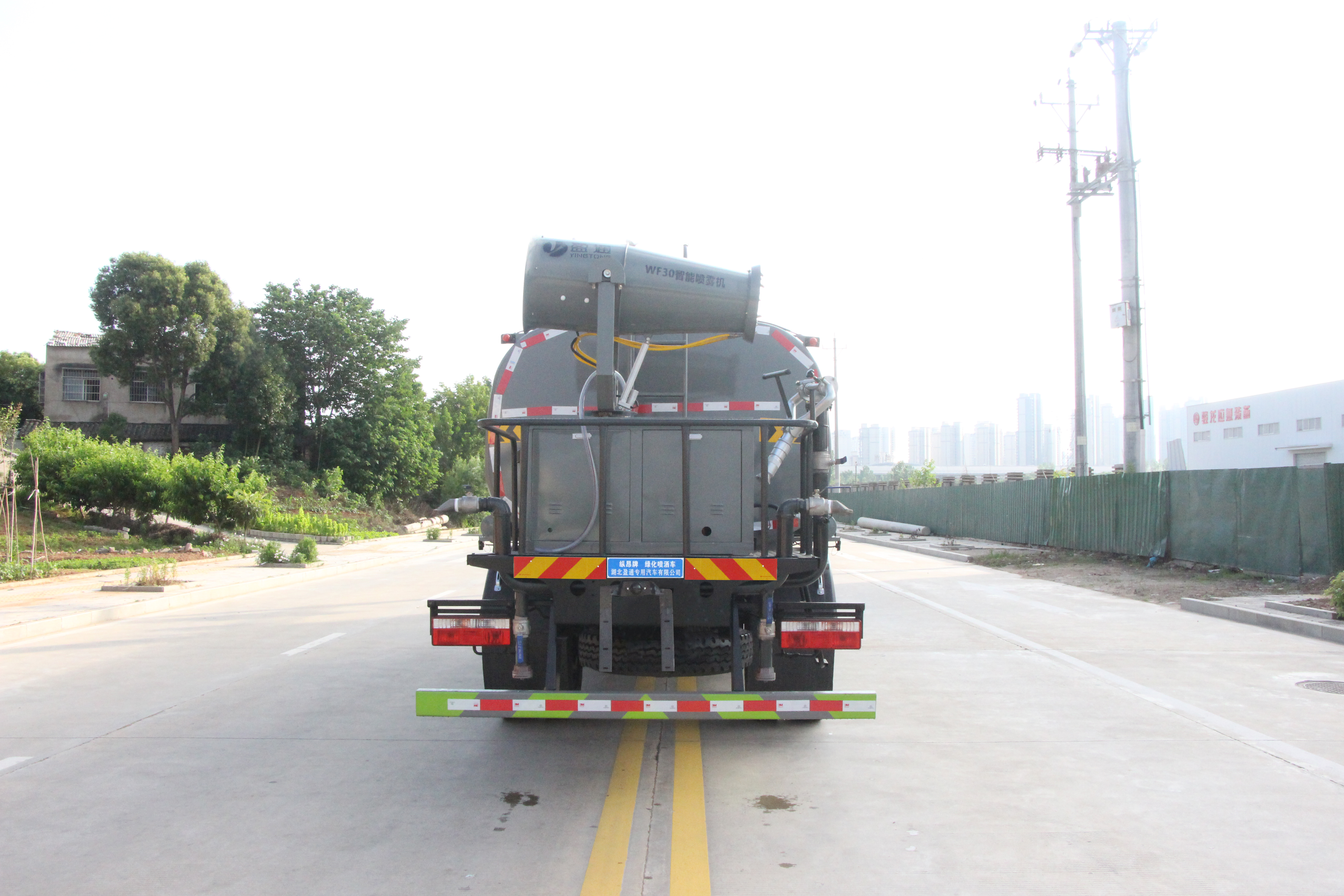 選裝噴霧裝置樣式;ABS型號(hào):ABS/ASR-24V-4S/4M;ABS生產(chǎn)企業(yè):襄陽(yáng)東風(fēng)隆誠(chéng)機(jī)械有限責(zé)任公司;隨底盤選裝駕駛室;側(cè)、后防護(hù)材料均為:Q235碳鋼,連接方式均為:螺栓連接,后部防護(hù)截面尺寸(mm):120×50,后部防護(hù)離地高度(mm):440;罐體總?cè)萘?/span>:8.47立方米;罐體有效容積:8.07立方米;罐體外形尺寸(長(zhǎng)×長(zhǎng)軸×短軸)(mm):4000×2050×1450;該車主要用于城鄉(xiāng)園林綠化噴灑,噴藥;主要裝置為水罐及噴灑裝置;隨底盤選裝油箱左右位置.選裝自動(dòng)球閥安裝位置,選裝后部噴灑裝置樣式.選裝前部電子炮樣式,前伸500mm時(shí),整車長(zhǎng)度為7750mm,7950mm.選裝罐體頂部方形罐口樣式及罐口位置,選裝工具箱,選裝箭頭燈裝置,選裝高位花灑裝置,選裝車輛前部鴨嘴裝置.后部作業(yè)燈僅在作業(yè)時(shí)開啟,車輛行駛過(guò)程中不可開啟. |