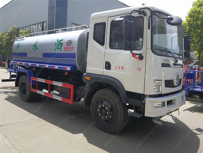灑水車廠家采用東風(fēng)國五145底盤,排半白色平頭前翻仿天錦豪華駕駛室,發(fā)動(dòng)機(jī)為國五玉柴160馬力,氣剎,增壓助力,八檔變速箱,3950mm軸距,輪胎為:9.00-20尼龍?zhí)?含一條備胎),ABS車輪防抱死系統(tǒng),電動(dòng)玻璃,下防護(hù)。