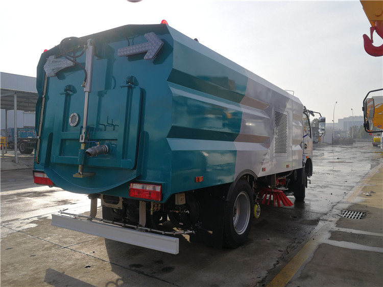 ● 清水箱和垃圾箱分體布置,有效空間利用最大化,一次連續(xù)作業(yè)時(shí)間長(zhǎng)。同時(shí)在作業(yè)過(guò)程中可通過(guò)污水排放裝置對(duì)污水進(jìn)行排放,隨時(shí)加清水繼續(xù)作業(yè);垃圾箱采用雙油缸自卸卸料,箱內(nèi)同時(shí)設(shè)有大流量高壓噴嘴,可快速?zèng)_洗垃圾箱