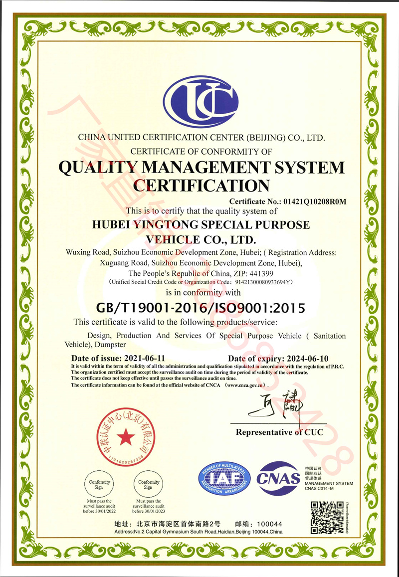 湖北盈通專用汽車有限公司愿竭誠(chéng)為您服務(wù),并期待您來(lái)我廠實(shí)地考察生產(chǎn)實(shí)力及產(chǎn)品工藝,我們?yōu)槟峁┳顑?yōu)質(zhì)的服務(wù)。 程力汽車集團(tuán)位于中國(guó)專用汽車之都—湖北省隨州市。在隨州市曾都區(qū)南郊,曾都經(jīng)濟(jì)技術(shù)開(kāi)發(fā)區(qū)、武漢等地均有生產(chǎn)制造基地。 湖北盈通專用汽車有限公司 3C認(rèn)證