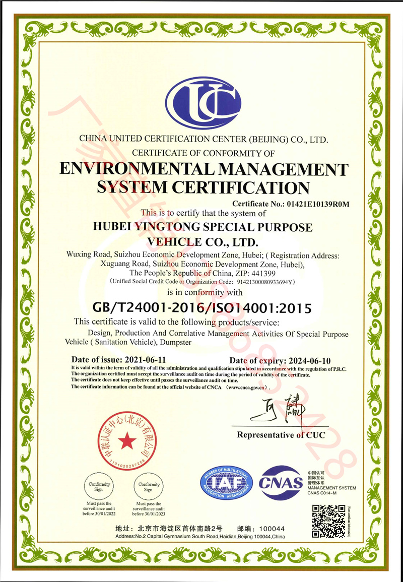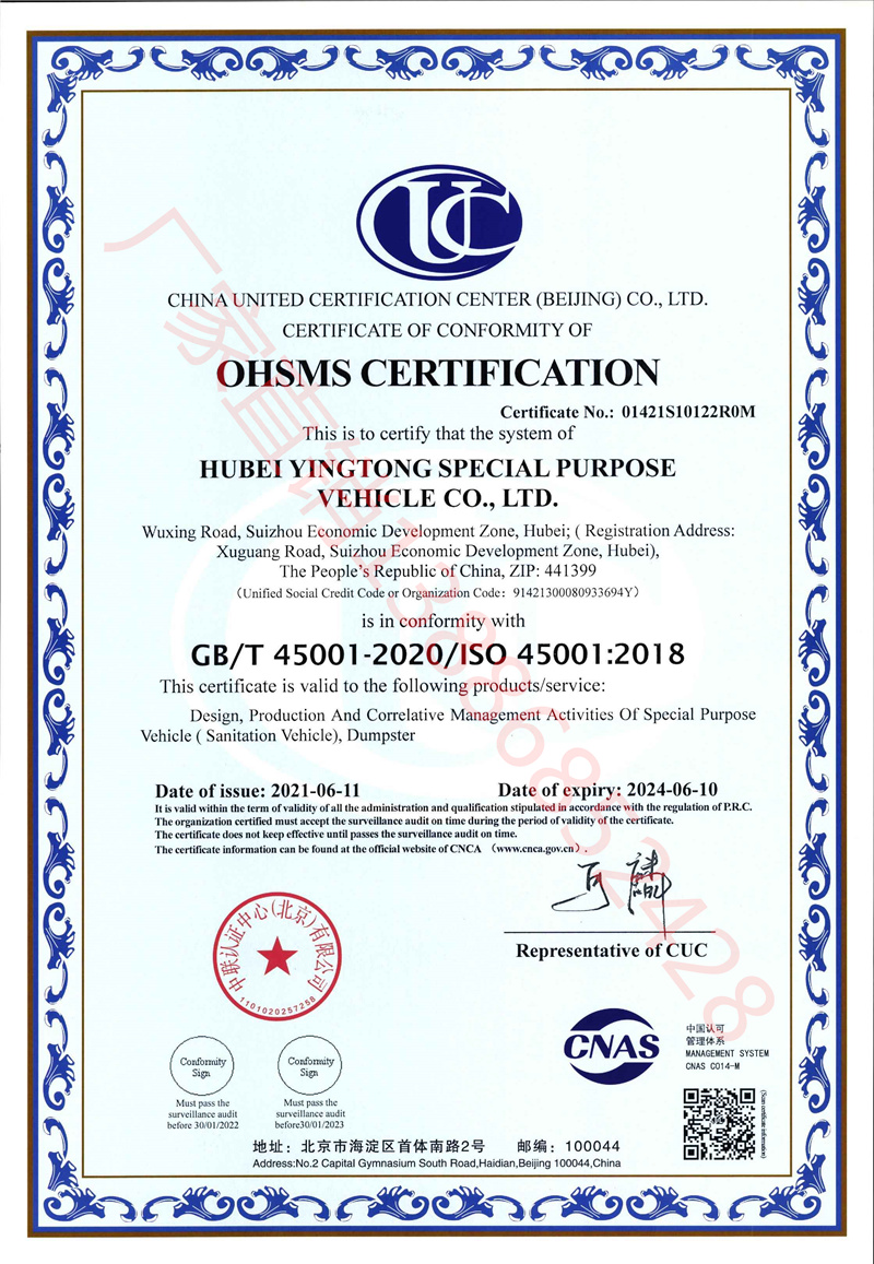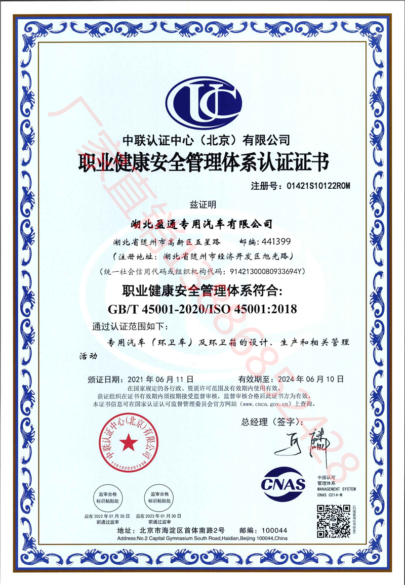 14001環(huán)境管理、OHSAS18001職業(yè)健康安全管理等體系認(rèn)證、3C強(qiáng)制性認(rèn)證、汽車節(jié)能環(huán)保認(rèn)證,汽車免征認(rèn)證,美國(guó)機(jī)械工程師阿斯米(ASME)認(rèn)證、歐盟協(xié)議ADR認(rèn)證。取得了各類重點(diǎn)生產(chǎn)資質(zhì):