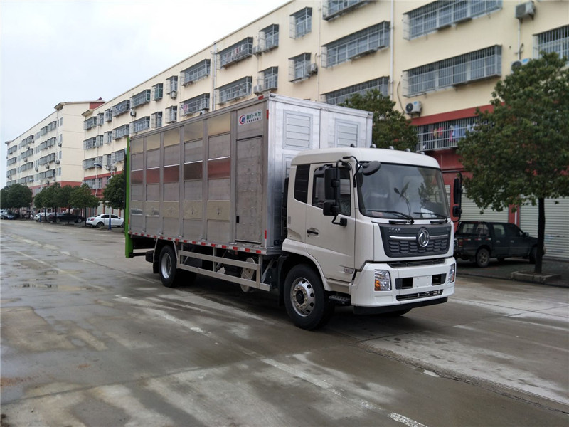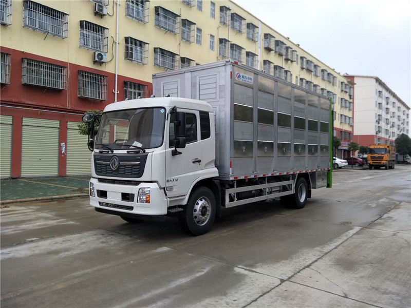 畜禽運輸車是我公司在借鑒國內(nèi)外產(chǎn)品的基礎(chǔ)上,結(jié)合用戶實際需求新研發(fā)的一款運輸仔豬、生豬、雞苗等畜禽的專用功能較強的運輸車輛,是我公司傾力打造的一款專門面向活禽、牲畜運輸市場的一款高端運輸車,該款運輸車旨在增強活禽、牲畜在運輸過程中的舒適度、減少死亡率,提高運輸效率,該車配備設(shè)施完善、自動化程度高。廂式畜禽運輸車可用于成品豬、生豬、豬仔、雞苗跨省運輸,全程無泄漏,有糞液收集系統(tǒng)箱體采用全鋁合金型材制作,質(zhì)量輕、抗腐蝕性強。箱體中層安裝保溫隔板,頂部采用玻璃鋼,有效避免高溫傳導,控制箱體內(nèi)部溫度。車廂內(nèi)部采用全液壓可調(diào)整分層結(jié)構(gòu),二層、三層、四層16欄(根據(jù)需求選擇)飲水系統(tǒng),側(cè)推拉通風滑窗,帶電子排風扇,視頻監(jiān)控,溫度顯示監(jiān)控,中間有隔欄,每層約承重300頭仔豬的重量。車廂后部選裝垂直液壓升降尾板,更實用!