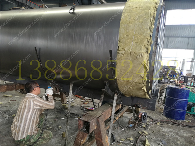 保溫層在制作上主要是在罐體外部先焊接一個(gè)支撐骨架,其厚度一般為100mm,然后再用保溫材料把骨架填充滿。在保溫材料的選擇上我們一般考慮導(dǎo)熱系數(shù)小,耐高溫,質(zhì)量輕,吸聲性能好,絕緣性和化學(xué)穩(wěn)定性好的硬質(zhì)聚氨酷泡沫塑料或巖棉。然后需要對(duì)填充的保溫材料進(jìn)行修正,最后在骨架上撞上蒙板,蒙板一般使用厚度為lmm的冷軋板。