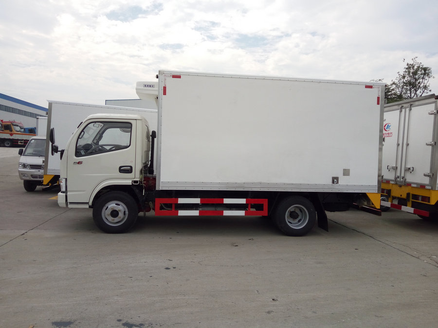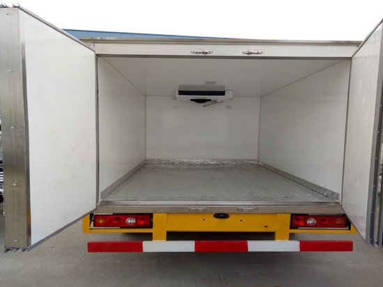 冷藏車廂體:采用國標A級聚氨酯保溫材料,厚度為8厘米,廂體內(nèi)外采用玻璃鋼材質(zhì)全包裹。不銹鋼鎖件。包角、包邊鋁合金型材。底盤采用高強度花紋鋁板定制。可選裝肉鉤導(dǎo)軌,和底部通風(fēng)槽。