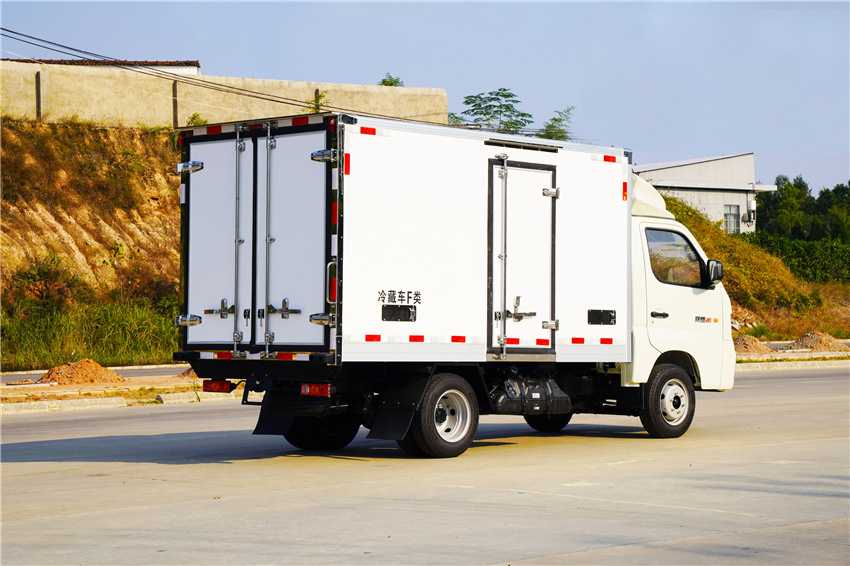 福田祥菱M1冷藏車采用國六汽油東安115馬力(DAM15KR)發(fā)動機,5擋變速箱,2750軸距,高配,原廠空調,后雙胎,5檔變速箱,175R14后雙胎,122后橋,ABS,電動助力轉向,