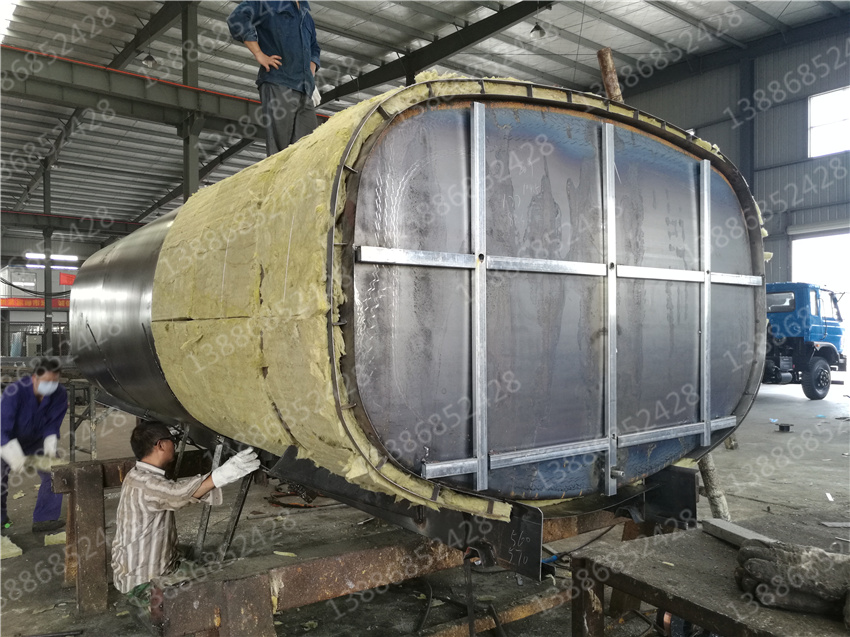 保溫熱水運水車與普通灑水車的區(qū)別,就是在水罐體外多加了一道保溫層。保層溫的制作是在水罐外部另外焊