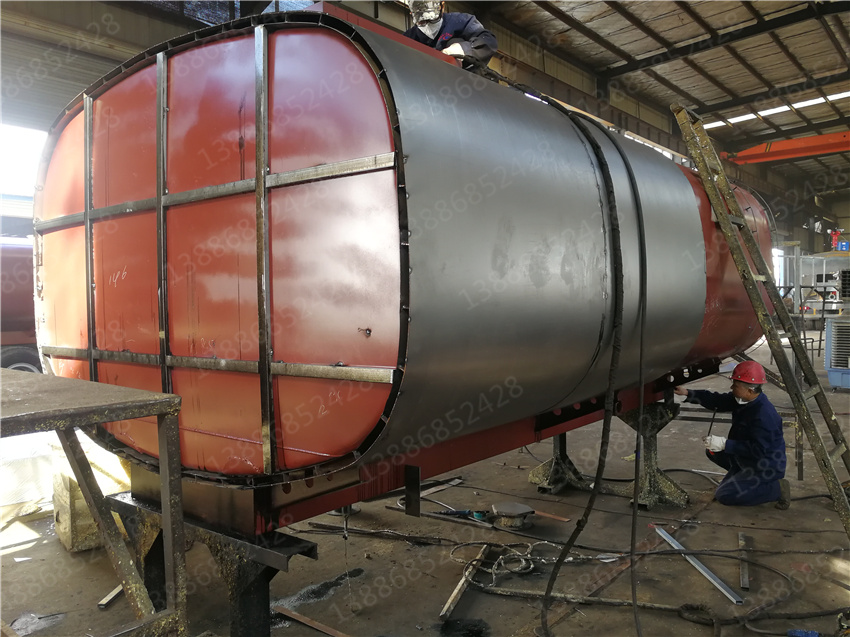 3. 保層溫的制作是在水罐外部另外焊接10mm厚的支撐骨架,然后用保溫材料將骨架內(nèi)部填充滿,**在骨架外蒙上一層外皮。 保溫層外表鐵皮采用8mm厚高強度耐磨板,可選擇使用不銹鋼分鏡面8K或磨砂板