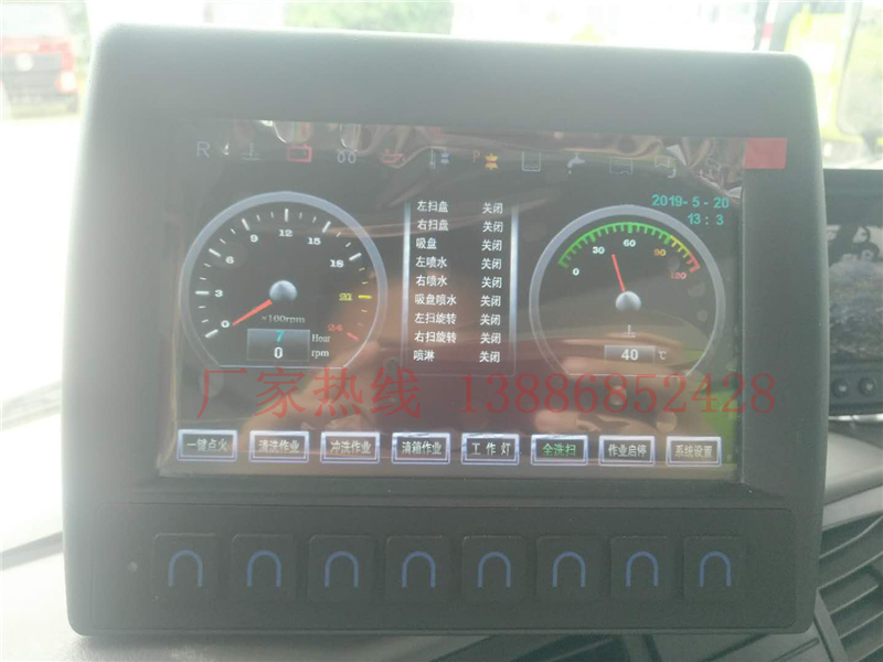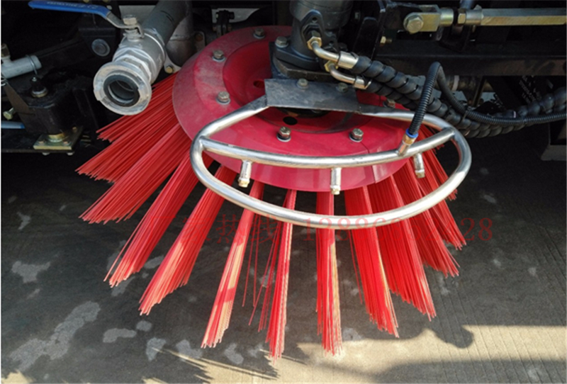14、左右立掃為單掃盤,減少了掃刷的數(shù)量和掃刷消耗量,能降低使用成本。掃刷上加裝噴水裝置,用于噴霧降塵。左右立掃分開控制,可實(shí)現(xiàn)右掃和全掃等不同的作業(yè)模式。