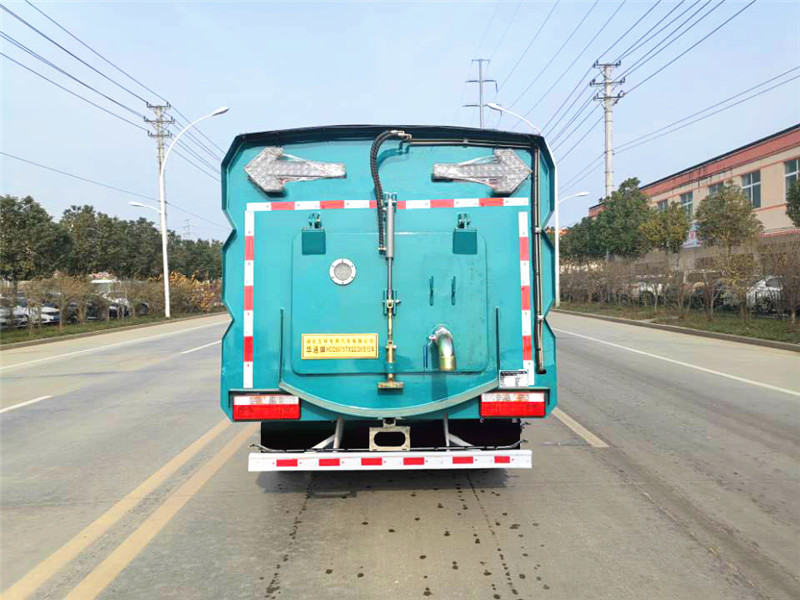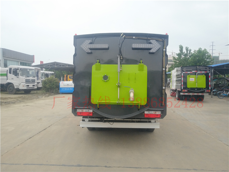 ● 清水箱和垃圾箱分體布置,有效空間利用最大化,一次連續(xù)作業(yè)時(shí)間長。同時(shí)在作業(yè)過程中可通過污水排放裝置對污水進(jìn)行排放,隨時(shí)加清水繼續(xù)作業(yè);垃圾箱采用雙油缸自卸卸料,箱內(nèi)同時(shí)設(shè)有大流量高壓噴嘴,可快速?zèng)_洗垃圾箱