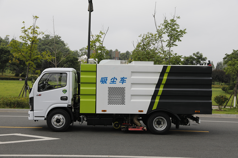 吸塵車垃圾箱上端裝有過濾系統(tǒng)和除塵