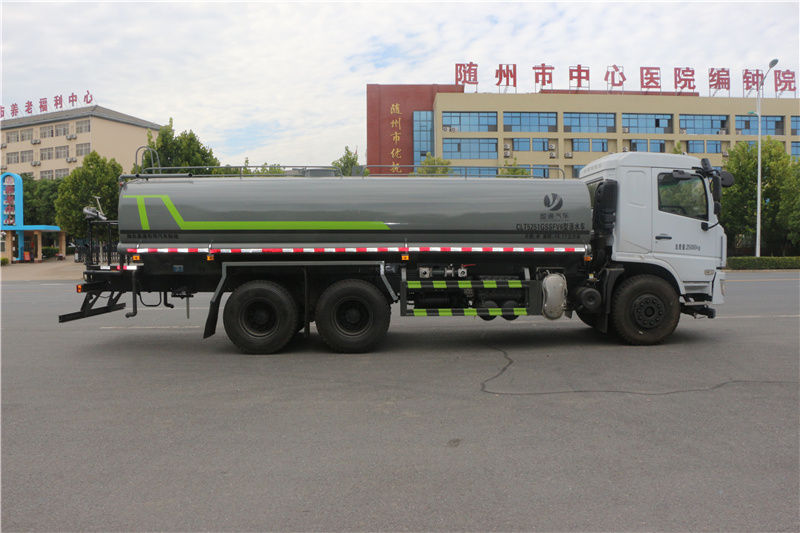 東風(fēng)專底D3L灑水車_東風(fēng)專底20方灑水車_湖北盈通專用汽車有限公司,該車主要用于城鄉(xiāng)園林綠化,路面噴灑,除塵和降溫;主要裝置為水罐及噴灑裝置;隨底盤選裝駕駛室;罐體有效容積:15.17立方米;罐體外形尺寸(長(zhǎng)×長(zhǎng)軸×短軸)(mm):6900×2370×1360;側(cè)后防護(hù)情況:側(cè)、后防護(hù)材料均為:Q235碳鋼,連接方式均為:螺栓連接,后部防護(hù)截面尺寸(mm):120×50,后部防護(hù)離地高度(mm):460;ABS型號(hào)/生成廠家:3631010-C2000/東科克諾爾商用車制動(dòng)系統(tǒng)(十堰)有限公司。選裝附件布局。 |