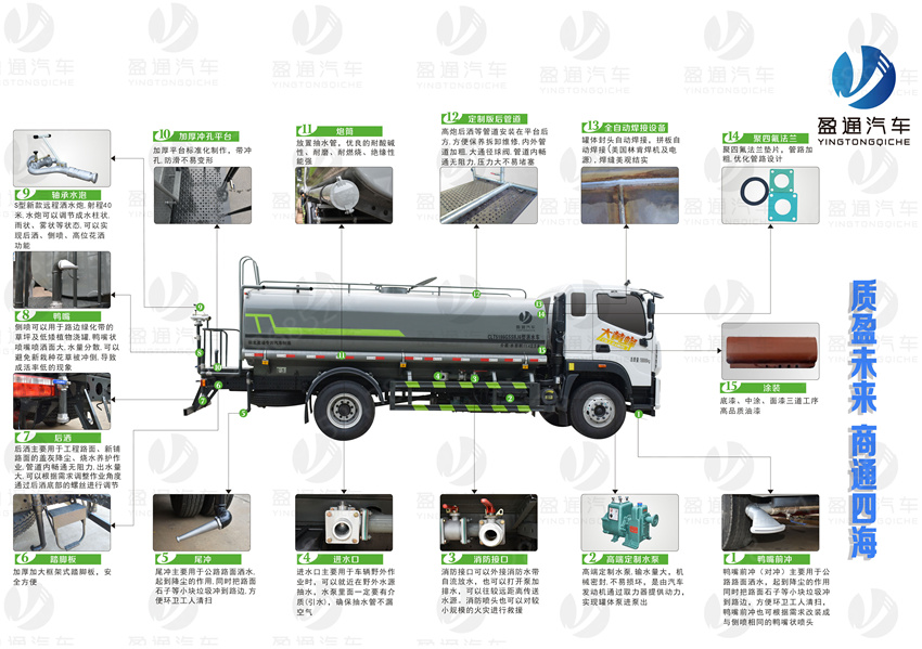 天錦22方灑水車_東風(fēng)天錦22方水罐車_國六22方灑水車_天錦后雙橋灑水車,該車主要用于城鄉(xiāng)園林綠化噴灑,噴藥;主要裝置為罐體及噴灑裝置;隨底盤選裝駕駛室;罐體總?cè)萘?14.81立方米,罐體有效容積:14.11立方米,罐體外形尺寸(長×長軸×短軸)(mm):6800×2390×1620;側(cè)、后防護(hù)材料均為:Q235,連接方式均為:螺栓連接,后部防護(hù)截面尺寸(mm):120×50,后部防護(hù)離地高度(mm):460;ABS型號/生產(chǎn)廠家:3631010-C2000/東科克諾爾商用車制動系統(tǒng)(十堰)有限公司,J ABS/焦作博瑞克控制技術(shù)有限公司.采用底盤4350+1350(mm)軸距。選裝擋泥板樣式。選裝后部箭頭燈,選裝后部弧形噴灑裝置,選裝后部樣式,選裝水炮支架位置,選裝高位花灑管道樣式,選裝自動球閥安裝位置。 |