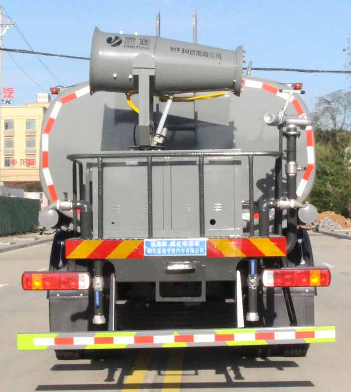 該車主要用于城鄉(xiāng)園林綠化噴灑作業(yè);主要裝置為水罐及噴灑裝置;運輸介質(zhì):丙酮水溶液,介質(zhì)密度:950千克/立方米.罐體總?cè)萘?/span>:16.59立方米;罐體有效容積:15.8立方米;罐體外形尺寸(長×長軸×短軸)(mm):6800×2400×1450.側(cè)、后防護材料均為:Q235碳鋼,連接方式均為:螺栓連接,后部防護截面尺寸(mm):120×50,后部防護離地高度(mm):490;ABS系統(tǒng)型號/生產(chǎn)企業(yè):CM4XL-4S/4M,廣州瑞立科密汽車電子股份有限公司.該車隨底盤安裝限速裝置,限速89km/h.選裝前部不帶電子水炮,該狀態(tài)下車長為10150mm;當前部安裝電子水炮時,車長為10650mm,車輛前伸500mm.選裝前部電子水炮裝置樣式,選裝車輛前部鴨嘴裝置. |