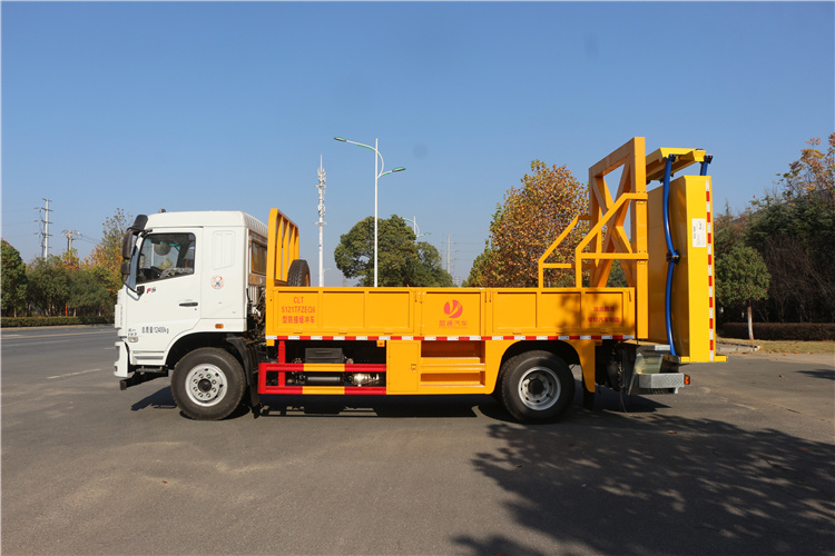 上裝配置:護箱:采用Q235國標(biāo)邊3mm底板花紋板4mm厚,箱體后部防撞包采用美國進口T90型號,防撞緩沖吸能模塊主要由車載防撞緩沖墊和導(dǎo)向標(biāo)志架組成,充當(dāng)施工作業(yè)車輛后方的緩沖衛(wèi)士。如若發(fā)生追尾事故,能夠在肇事車輛和前方施工作業(yè)區(qū)域之間構(gòu)建一個緩沖區(qū)域,通過機具結(jié)構(gòu)變形吸收撞擊的能量,最大限度地降低被保護人員及設(shè)備遭到碰撞的幾率。高性能液壓系統(tǒng),可實現(xiàn)快速舉升和落下操作,方便設(shè)備運輸轉(zhuǎn)場,一鍵啟動功能,舉升和落下防撞裝置,當(dāng)防撞裝置未完全落下到工作位置或舉升到垂直運輸位置時,會有自動警告音提示。