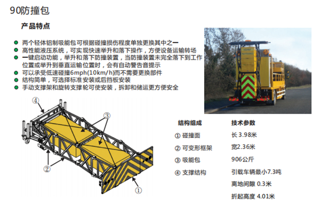 3、緩沖防撞車可廣泛地應(yīng)用于高速公路、國省道、城市快速路、大型橋梁和隧道。可以有效提升道路交通的安全防護(hù)水平。
