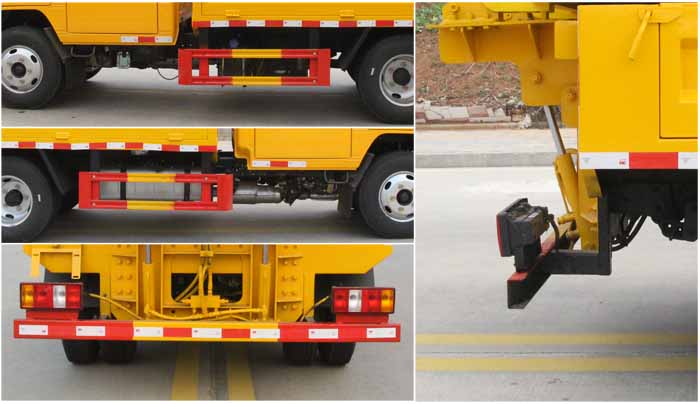 該車專用裝置為:車載式緩撞裝置,主要用于移動(dòng)施工、臨時(shí)性封閉車道或交通事故處理及搶險(xiǎn)現(xiàn)場,降低城市道路施工、高速公路養(yǎng)護(hù)等作業(yè)中的安全問題.ABS系統(tǒng)型號:APG3550500A,ABS系統(tǒng)生產(chǎn)廠家:浙江亞太機(jī)電股份有限公司.側(cè)/后部防護(hù)材料均為:Q235碳鋼,側(cè)防護(hù)采用螺栓連接,后防護(hù)采用焊接連接,后部防護(hù)截面尺寸(mm):100×50,后部防護(hù)離地高度(mm):420. |